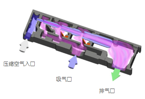 多级气动真空发生器采用多级喷嘴结构设计,可以利用较少的压缩空气产生较大流量的真空抽气量,较单级真空发生器要节约压缩空气60%左右。与机械式真空泵相比,无需润滑油,噪音低,开机瞬间产生真空,不需保养。